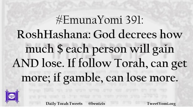 #EmunaYomi 391: RoshHashana: God decrees how much $ each person will gain AND lose. If follow Torah, can get more; if gamble, can lose more.