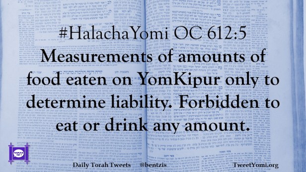 #HalachaYomi OC 612:5 Measurements of amounts of food eaten on YomKipur only to determine liability. Forbidden to eat or drink any amount.