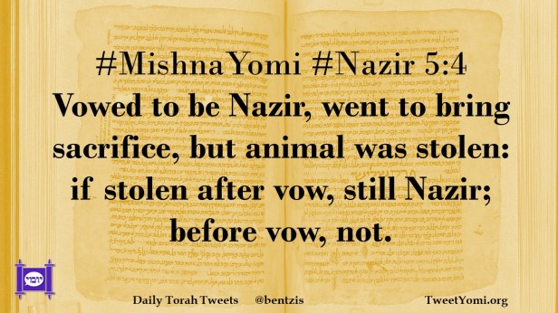 #MishnaYomi #Nazir 5:4 Vowed to be Nazir, went to bring sacrifice, but animal was stolen: if stolen after vow, still Nazir; before vow, not.