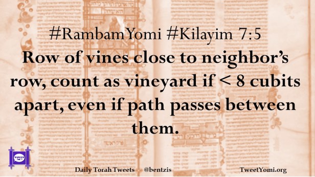 #RambamYomi #Kilayim 7:5 Row of vines close to neighbor’s row, count as vineyard if < 8 cubits apart, even if path passes between them.