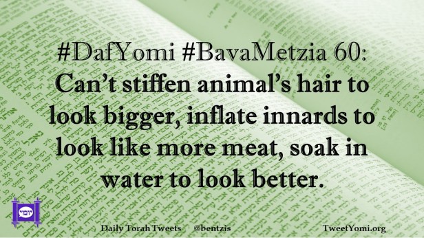 #DafYomi #BavaMetzia 60: Can’t stiffen animal’s hair to look bigger, inflate innards to look like more meat, soak in water to look better.