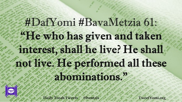 #DafYomi #BavaMetzia 61: “He who has given and taken interest, shall he live? He shall not live. He performed all these abominations.”