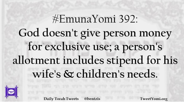#EmunaYomi 392: God doesn’t give person money for exclusive use; a person’s allotment includes stipend for his wife’s & children’s needs.