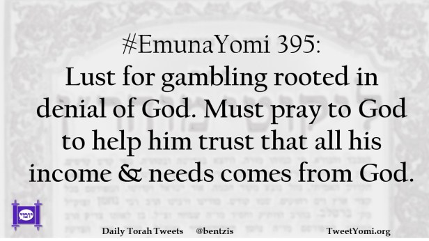 #EmunaYomi 395: Lust for gambling rooted in denial of God. Must pray to God to help him trust that all his income & needs comes from God.