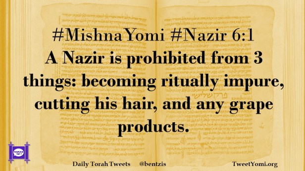 #MishnaYomi #Nazir 6:1 A Nazir is prohibited from 3 things: becoming ritually impure, cutting his hair, and any grape products.
