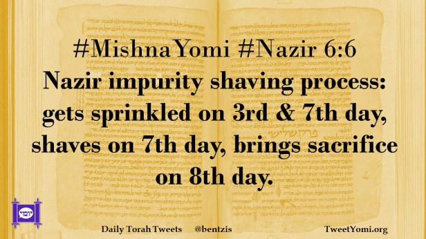 #MishnaYomi #Nazir 6:6 Nazir impurity shaving process: gets sprinkled on 3rd & 7th day, shaves on 7th day, brings sacrifice on 8th day.