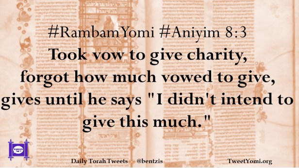 #RambamYomi #Aniyim 8:3 Took vow to give charity, forgot how much vowed to give, gives until he says “I didn’t intend to give this much.”