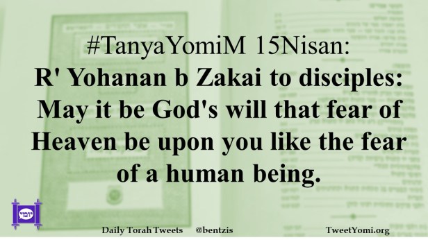 #TanyaYomiM 15Nisan: R’ Yohanan b Zakai to disciples: May it be God’s will that fear of Heaven be upon you like the fear of a human being.