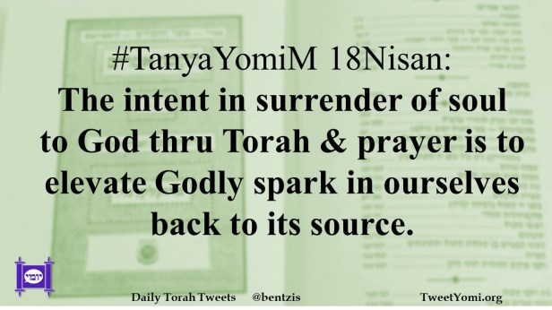 #TanyaYomiM 18Nisan: The intent in surrender of soul to God thru Torah & prayer is to elevate Godly spark in ourselves back to its source.