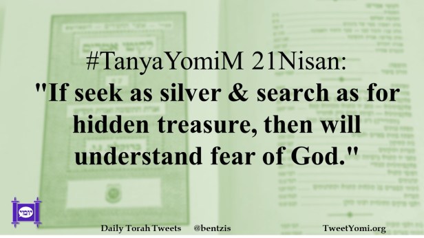 TanyaYomiM #TanyaYomiM 21Nisan Date: April 30, 2024Author: netanelspitz #TanyaYomiM 21Nisan: “If seek as silver & search as for hidden treasure, then will understand fear of God.” Share this: Share on X (Opens in new window) X Share on Facebook (Opens in new window) Facebook Like Loading... Related