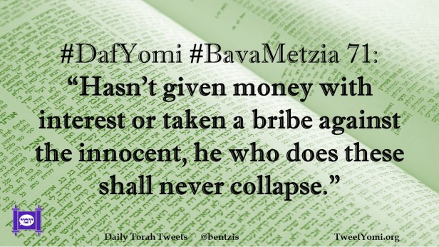 #DafYomi #BavaMetzia 71: “Hasn’t given money with interest or taken a bribe against the innocent, he who does these shall never collapse.”