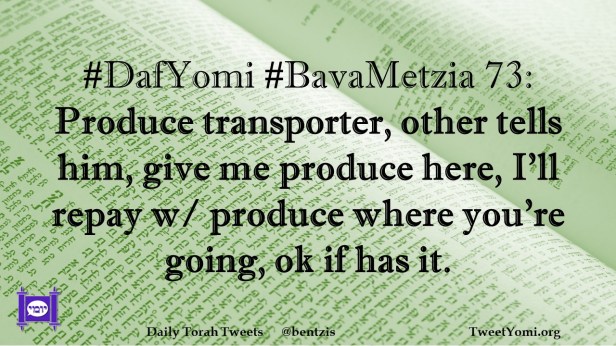 #DafYomi #BavaMetzia 73: Produce transporter, other tells him, give me produce here, I’ll repay w/ produce where you’re going, ok if has it.