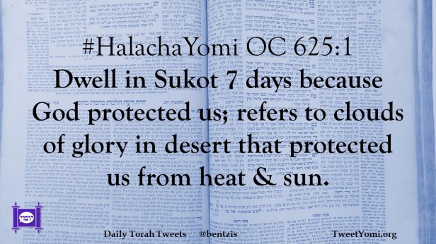 #HalachaYomi OC 625:1 Dwell in Sukot 7 days because God protected us; refers to clouds of glory in desert that protected us from heat & sun.