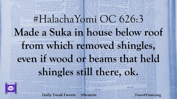 #HalachaYomi OC 626:3 Made a Suka in house below roof from which removed shingles, even if wood or beams that held shingles still there, ok.