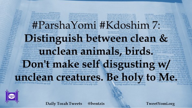 #ParshaYomi #Kdoshim 7: Distinguish between clean & unclean animals, birds. Don’t make self disgusting w/ unclean creatures. Be holy to Me.