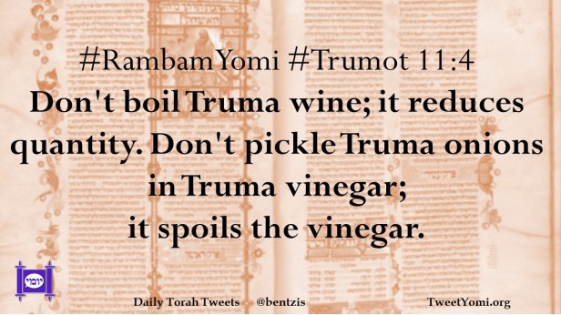 #RambamYomi #Trumot 11:4 Don’t boil Truma wine; it reduces quantity. Don’t pickle Truma onions in Truma vinegar; it spoils the vinegar.