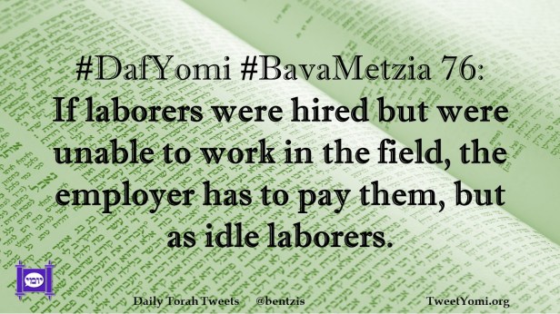 #DafYomi #BavaMetzia 76: If laborers were hired but were unable to work in the field, the employer has to pay them, but as idle laborers.