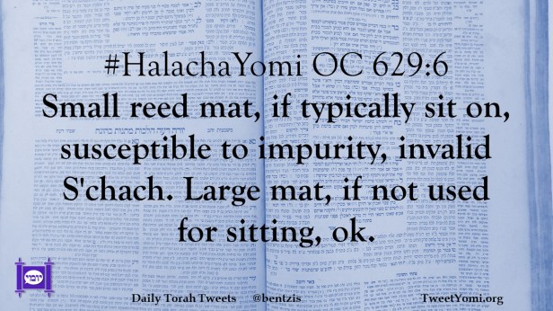 #HalachaYomi OC 629:6 Small reed mat, if typically sit on, susceptible to impurity, invalid S’chach. Large mat, if not used for sitting, ok.