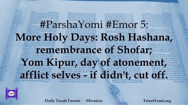 #ParshaYomi #Emor 5: More Holy Days: Rosh Hashana, remembrance of Shofar; Yom Kipur, day of atonement, afflict selves – if didn’t, cut off.