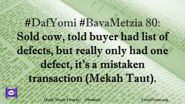 #DafYomi #BavaMetzia 80: Sold cow, told buyer had list of defects, but really only had one defect, it’s a mistaken transaction (Mekah Taut).