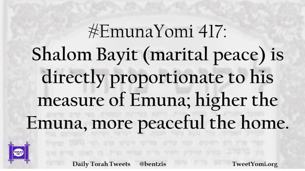 #EmunaYomi 417: Shalom Bayit (marital peace) is directly proportionate to his measure of Emuna; higher the Emuna, more peaceful the home.