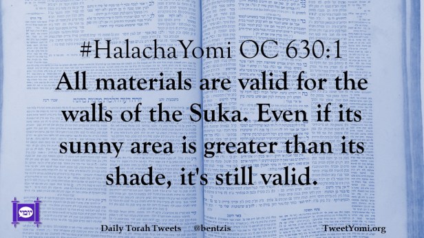 #HalachaYomi OC 630:1 All materials are valid for the walls of the Suka. Even if its sunny area is greater than its shade, it’s still valid.