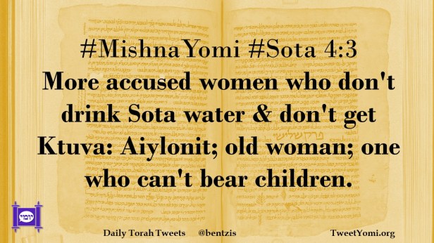 #MishnaYomi #Sota 4:3 More accused women who don’t drink Sota water & don’t get Ktuva: Aiylonit; old woman; one who can’t bear children.