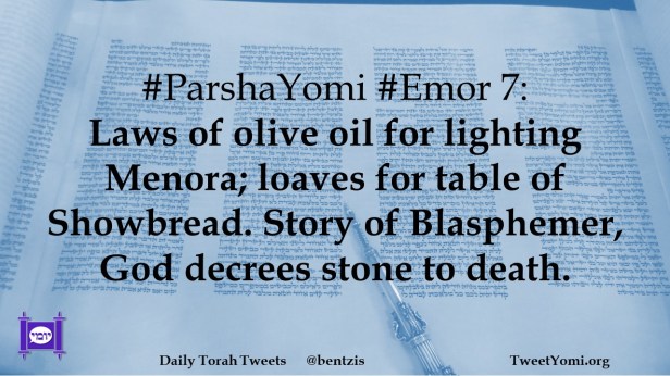 #ParshaYomi #Emor 7: Laws of olive oil for lighting Menora; loaves for table of Showbread. Story of Blasphemer, God decrees stone to death.