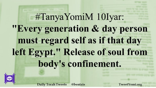 #TanyaYomiM 10Iyar: “Every generation & day person must regard self as if that day left Egypt.” Release of soul from body’s confinement.