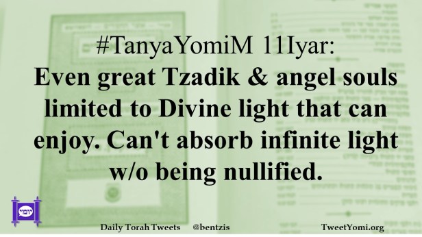 #TanyaYomiM 11Iyar: Even great Tzadik & angel souls limited to Divine light that can enjoy. Can’t absorb infinite light w/o being nullified.