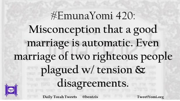 #EmunaYomi 420: Misconception that a good marriage is automatic. Even marriage of two righteous people plagued w/ tension & disagreements.
