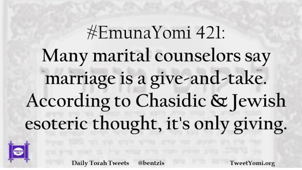 #EmunaYomi 421: Many marital counselors say marriage is a give-and-take. According to Chasidic & Jewish esoteric thought, it’s only giving.