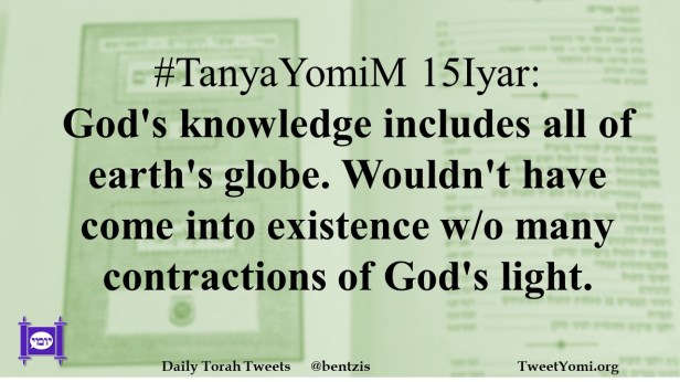 #TanyaYomiM 15Iyar: God’s knowledge includes all of earth’s globe. Wouldn’t have come into existence w/o many contractions of God’s light.