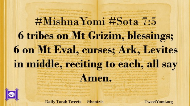 #MishnaYomi #Sota 7:5 6 tribes on Mt Grizim, blessings; 6 on Mt Eval, curses; Ark, Levites in middle, reciting to each, all say Amen.