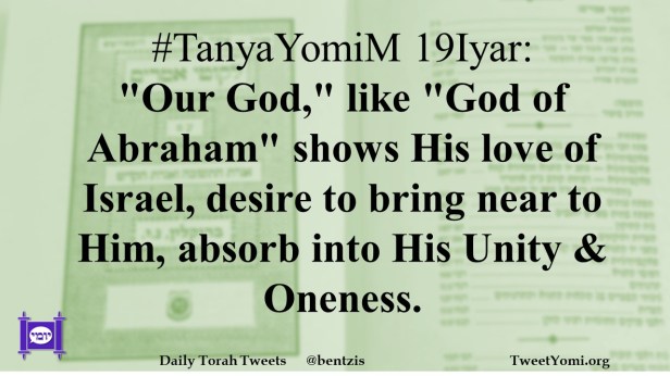 #TanyaYomiM 19Iyar: “Our God,” like “God of Abraham” shows His love of Israel, desire to bring near to Him, absorb into His Unity & Oneness.