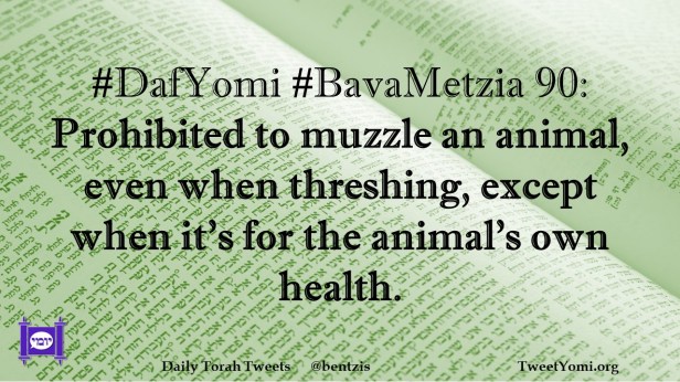 BavaMetzia, DafYomi #DafYomi #BavaMetzia 90 Date: June 2, 2024Author: netanelspitz #DafYomi #BavaMetzia 90: Prohibited to muzzle an animal, even when threshing, except when it’s for the animal’s own health. Share this: Share on X (Opens in new window) X Share on Facebook (Opens in new window) Facebook Like Loading... Related