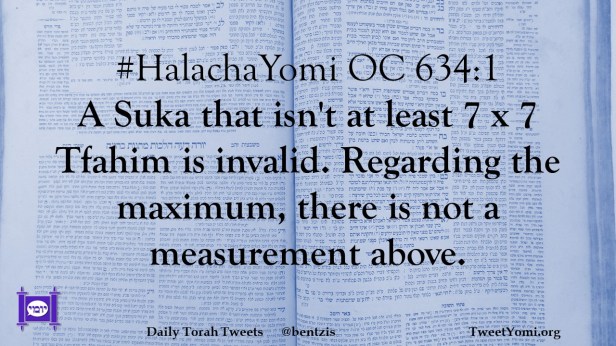 HalachaYomi OC 634:1 A Suka that isn’t at least 7 x 7 Tfahim is invalid. Regarding the maximum, there is not a measurement above.