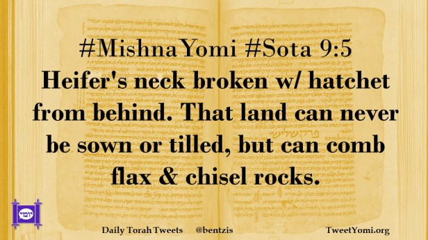 MishnaYomi #Sota 9:5 Heifer’s neck broken w/ hatchet from behind. That land can never be sown or tilled, but can comb flax & chisel rocks.