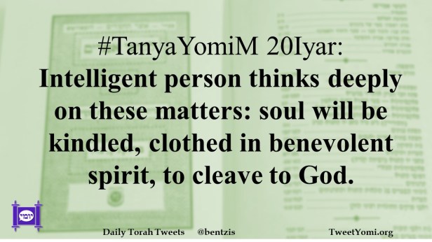 #TanyaYomiM 20Iyar: Intelligent person thinks deeply on these matters: soul will be kindled, clothed in benevolent spirit, to cleave to God.