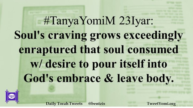 #TanyaYomiM 23Iyar: Soul’s craving grows exceedingly enraptured that soul consumed w/ desire to pour itself into God’s embrace & leave body.