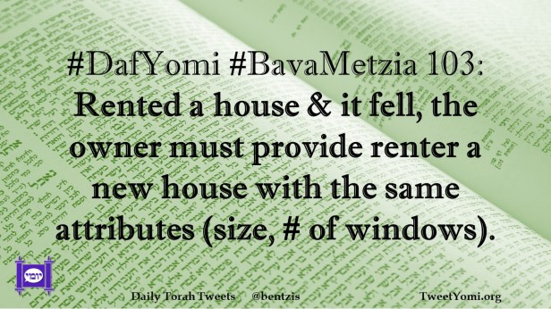 DafYomi #BavaMetzia 103: Rented a house & it fell, the owner must provide renter a new house with the same attributes (size, # of windows).