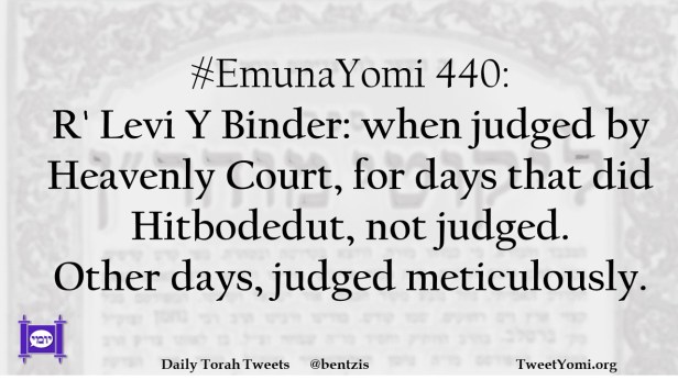 EmunaYomi 440: R’ Levi Y Binder: when judged by Heavenly Court, for days that did Hitbodedut, not judged. Other days, judged meticulously.