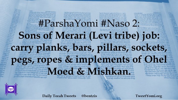 ParshaYomi #Naso 2: Sons of Merari (Levi tribe) job: carry planks, bars, pillars, sockets, pegs, ropes & implements of Ohel Moed & Mishkan.